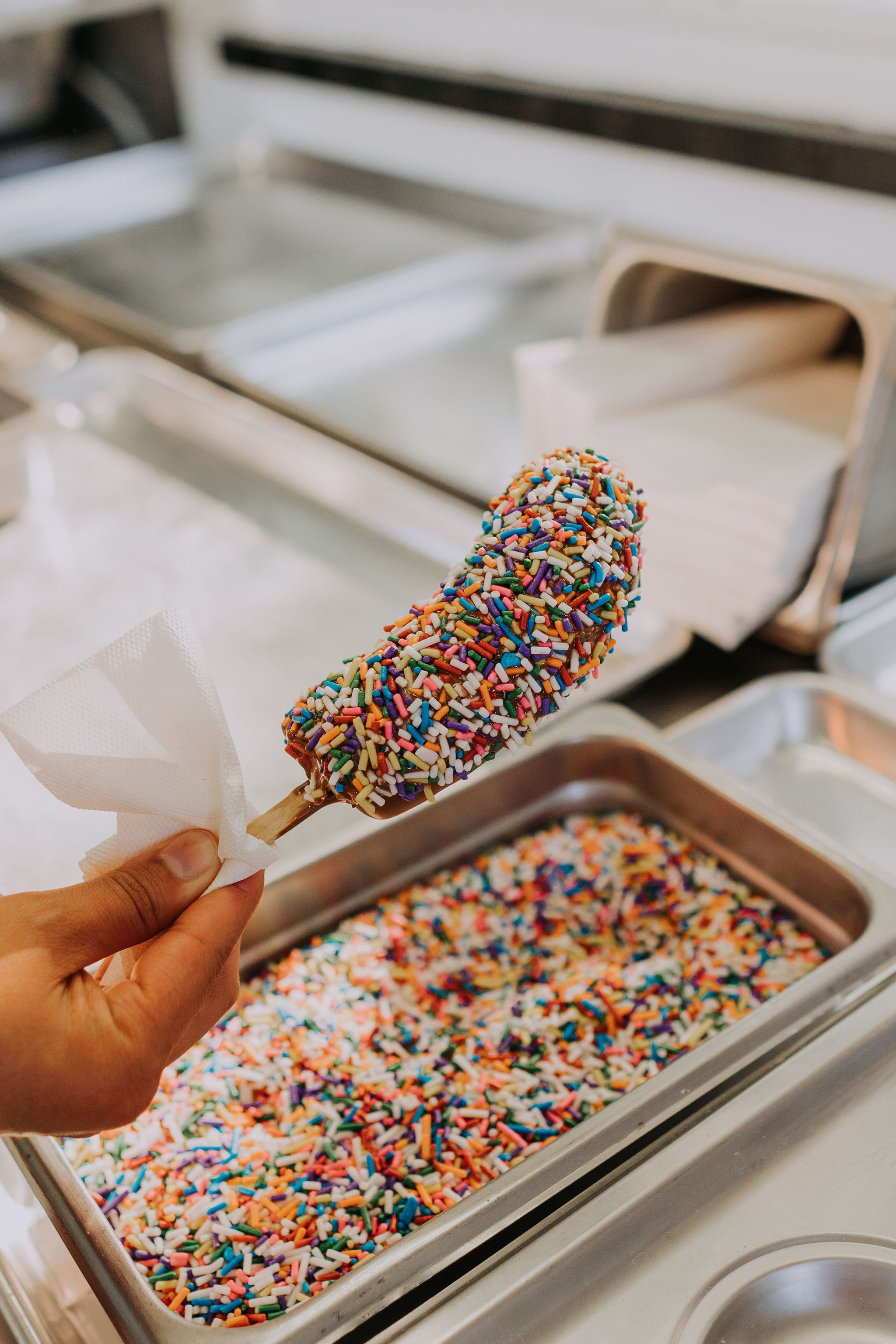 Frozen fusion, Golden Warmth: Frozen bananas & Fresh Churros